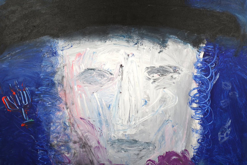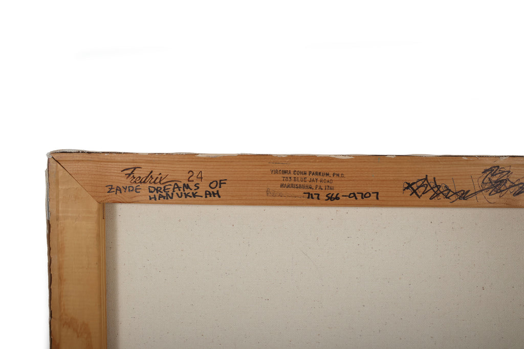 "Zayde Dreams of Hanukkah" was painted by the Rev. Dr. Virginia Cohn Parkum, exact date unknown. Acrylic on Canvas.