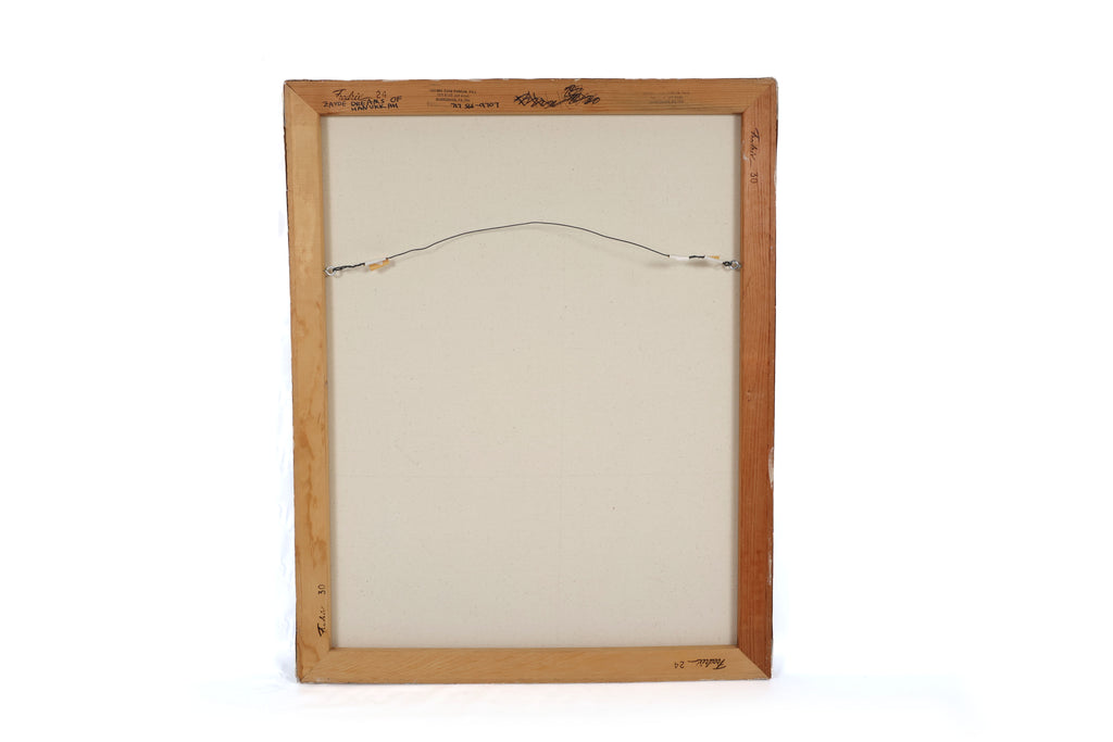 Title of painting and artists address stamped on the back.